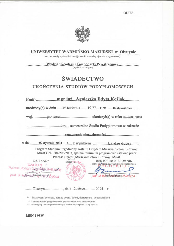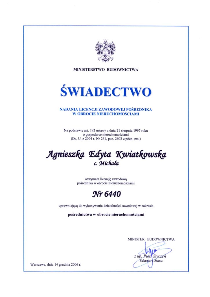 Pośrednictwo w obrocie nieruchomościami i wycena nieruchomości.